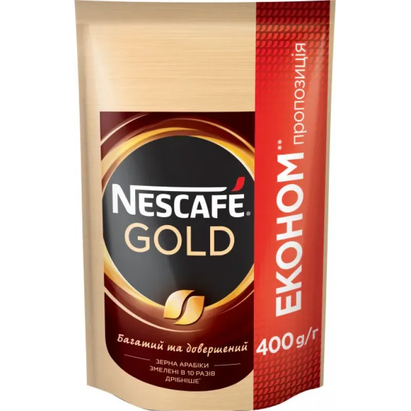 Кава розчинна Nescafé Gold 400 г | Економ пропозиція, Велика м'яка упаковка, Арабіка