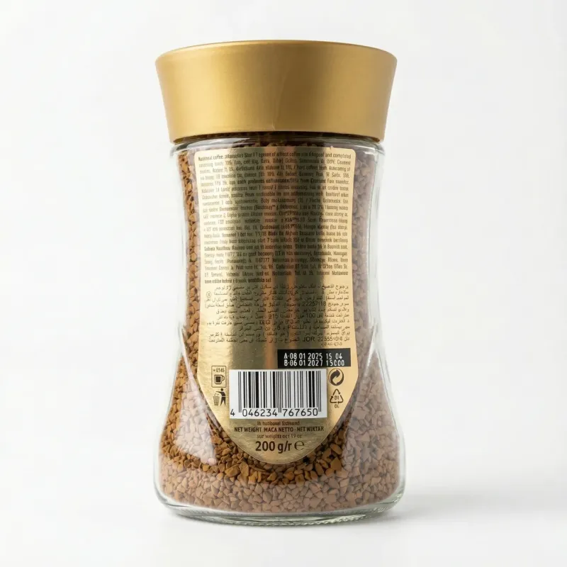 Розчинна кава Tchibo Gold Selection — шляхетний смак у кожній чашці! Tchibo Gold Selection — це виняткова композиція з добірних кавових зерен, обсмажених невеликими партіями до золотисто-коричневого відтінку. Завдяки унікальній технології обсмажування ("благородне обсмаження"), кава розкриває свій неперевершено багатий смак та інтенсивний аромат. Чому обирають Tchibo Gold Selection: Rich & Intense: Насичений та глибокий смак для справжніх поціновувачів міцної кави. Німецька якість: Бренд Tchibo гарантує ретельний відбір зерен та контроль на кожному етапі виробництва. Зручний формат: Скляна банка 200 г надійно зберігає первинний аромат кави та захищає її від вологи. Швидке приготування: Сублімовані кристали миттєво розчиняються, створюючи напій преміум-класу за лічені секунди. Характеристики: Тип: Розчинна, сублімована. Смак: Насичений, гармонійний. Вага: 200 г. Упаковка: Скляна банка. Виробник: Tchibo (Німеччина/ЄС). ☕ Замовляйте Tchibo Gold Selection — подаруйте собі "золотий стандарт" кавового задоволення!
