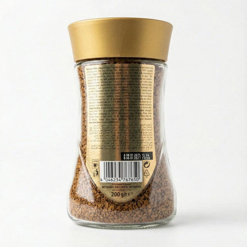 Розчинна кава Tchibo Gold Selection — шляхетний смак у кожній чашці! Tchibo Gold Selection — це виняткова композиція з добірних кавових зерен, обсмажених невеликими партіями до золотисто-коричневого відтінку. Завдяки унікальній технології обсмажування ("благородне обсмаження"), кава розкриває свій неперевершено багатий смак та інтенсивний аромат. Чому обирають Tchibo Gold Selection: Rich & Intense: Насичений та глибокий смак для справжніх поціновувачів міцної кави. Німецька якість: Бренд Tchibo гарантує ретельний відбір зерен та контроль на кожному етапі виробництва. Зручний формат: Скляна банка 200 г надійно зберігає первинний аромат кави та захищає її від вологи. Швидке приготування: Сублімовані кристали миттєво розчиняються, створюючи напій преміум-класу за лічені секунди. Характеристики: Тип: Розчинна, сублімована. Смак: Насичений, гармонійний. Вага: 200 г. Упаковка: Скляна банка. Виробник: Tchibo (Німеччина/ЄС). ☕ Замовляйте Tchibo Gold Selection — подаруйте собі "золотий стандарт" кавового задоволення!