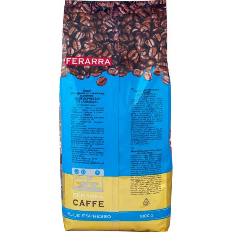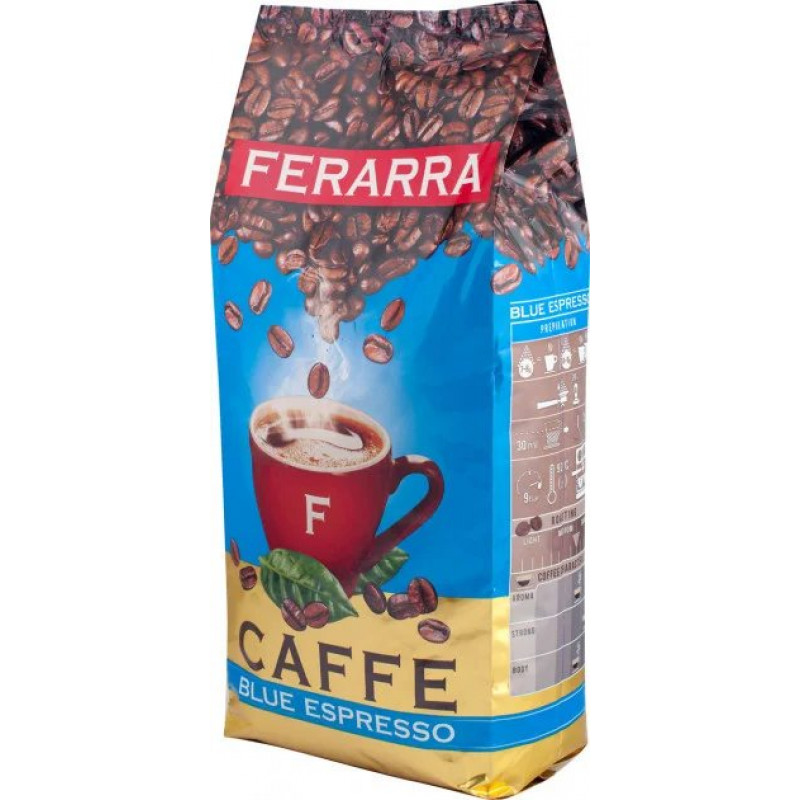 Теги: кава в зернах, Ferarra Blue Espresso, преміум кава, кава середнього обсмаження, кава для еспресо, купаж кави, кава 1 кг