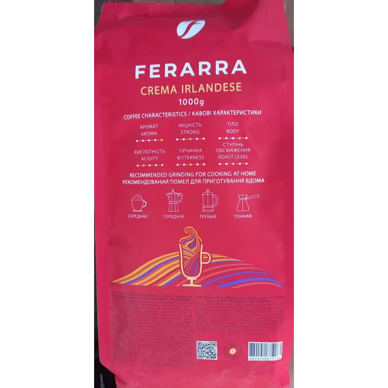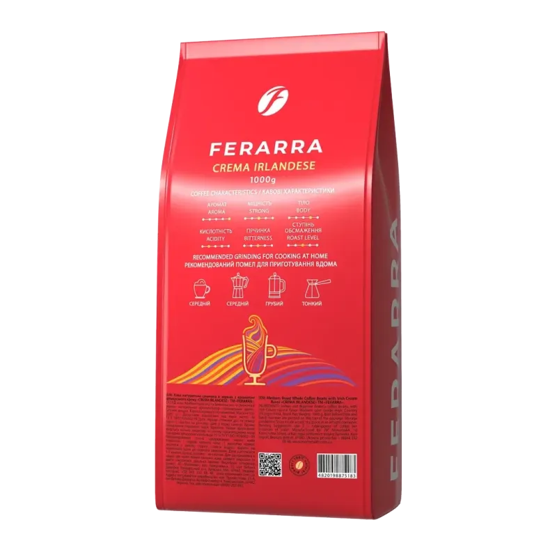 Відкрийте для себе унікальне поєднання якісної арабіки та вишуканого аромату ірландського крему. Ferarra Crema Irlandese — це кава, яка перетворює звичайний ранок на справжню церемонію насолоди.