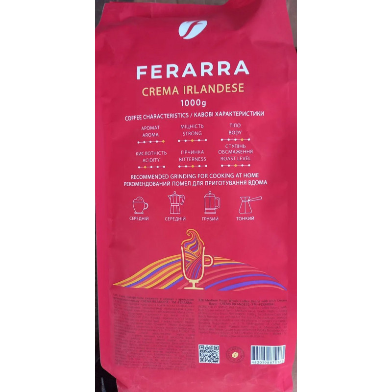 Теги: кава в зернах, Ferarra Crema Irlandese, кава з ароматом крему, ірландський крем, кава для кавомашини, ароматизована кава, кава 1 кг