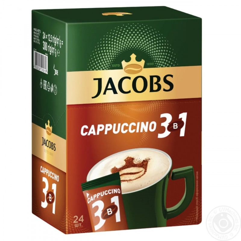 Кавовий напій Jacobs 3в1 Cappuccino 24 стіки (упаковка) | Висока пінка, М'який смак, Капучино