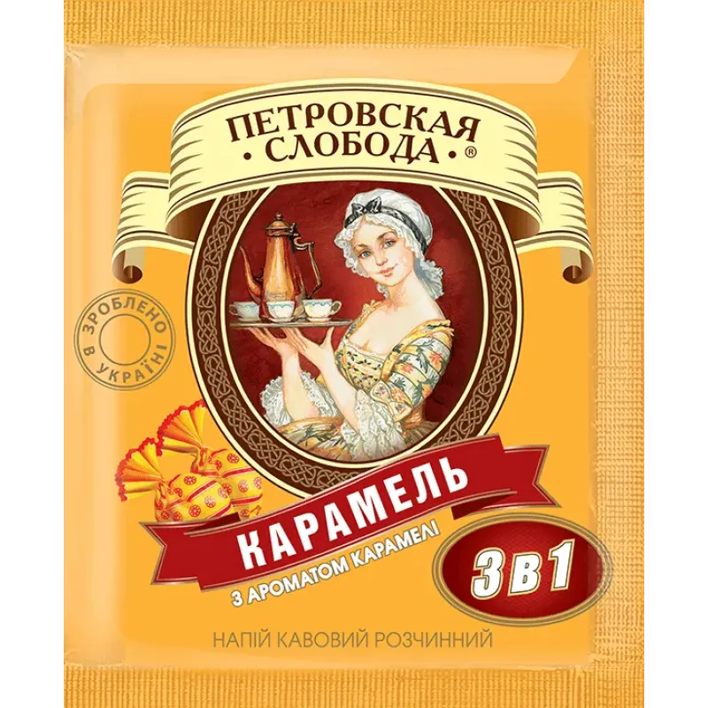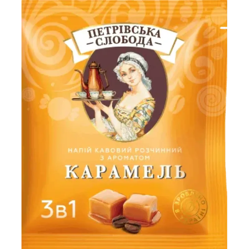 Кавовий напій Петрівська Слобода 3в1 Карамель 25 пакетиків (упаковка) | Солодка карамель, М'який смак, Українська