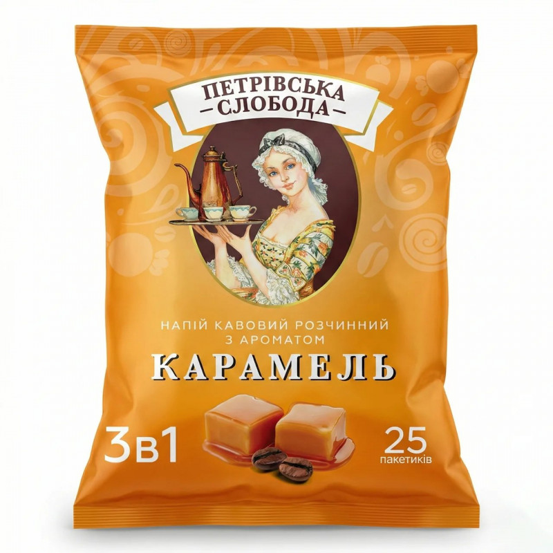 Кавовий напій Петрівська Слобода 3в1 Карамель 25 пакетиків — ідеальне поєднання смаку та зручності