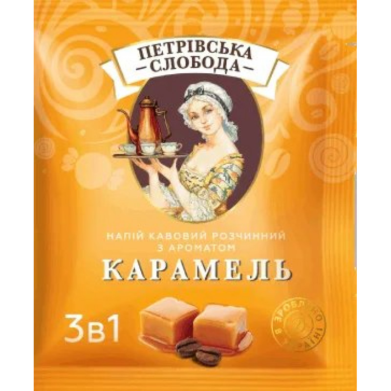 Кавовий напій Петрівська Слобода 3в1 Карамель 25 пакетиків (упаковка) | Солодка карамель, М'який смак, Українська