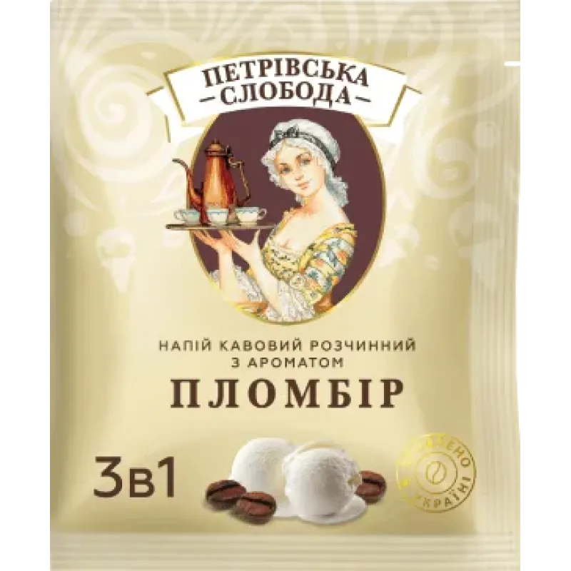 Кавовий напій Петрівська Слобода 3в1 Пломбір 25 пакетиків (упаковка) | Смак морозива, Вершковий, Зроблено в Україні