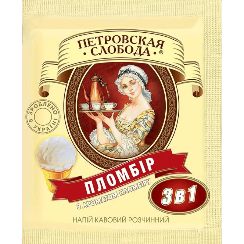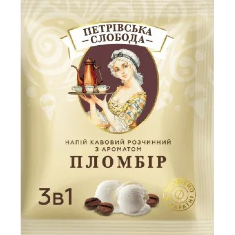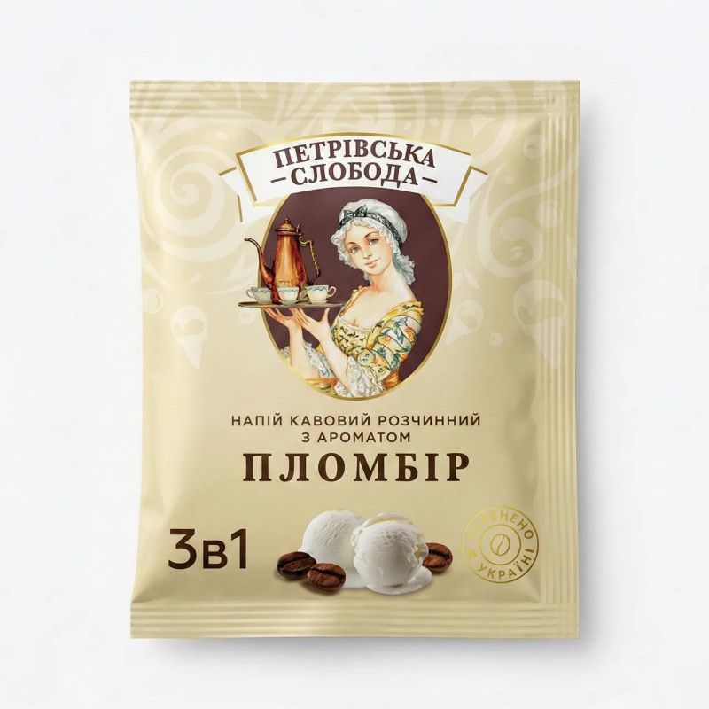 Кавовий напій Петрівська Слобода 3в1 Пломбір 25 пакетиків (упаковка) | Смак морозива, Вершковий, Зроблено в Україні