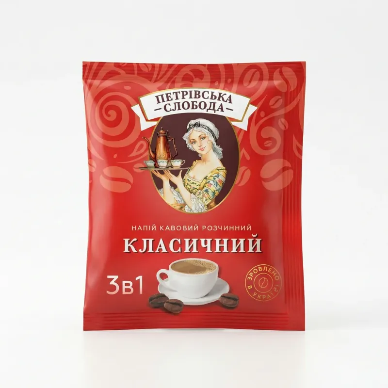 Кавовий напій Петрівська Слобода 3в1 Класичний 25 стіків (упаковка) | Українська кава, Насичений смак