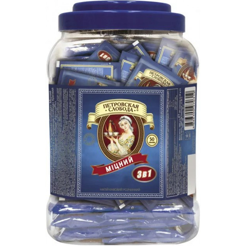 Кавовий напій Петрівська Слобода 3в1 Міцний — 50 пакетиків у зручній банці для офісу та опту