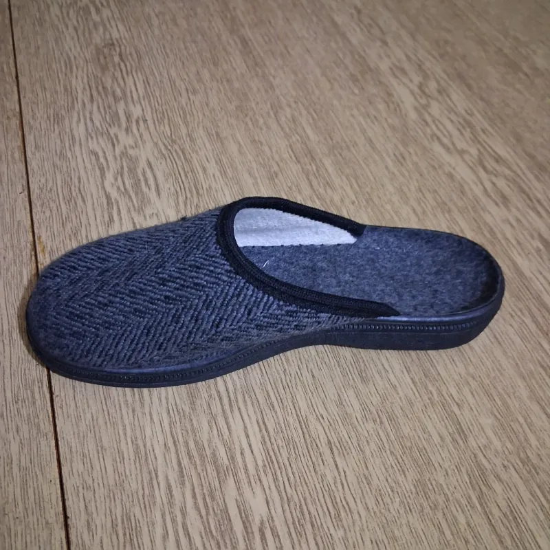 Класичні кімнатні тапочки від перевіреного бренду Litma — це поєднання комфорту, простоти та довговічності. Модель виконана у практичному темно-сірому кольорі зі стильным візерунком "в ялинку". Завдяки широкій розмірній сітці (від 36 до 45), ці капці чудово підходять як жінкам, так і чоловікам, а також стануть ідеальним варіантом "гостьового" взуття. Верх виготовлений з щільного, приємного на дотик текстилю (типу повсті), який добре зберігає тепло і дозволяє ногам дихати. Підошва виконана з якісного ПВХ, вона гнучка, зносостійка та не ковзає на гладких поверхнях (паркет, плитка, лінолеум). Анатомічна форма колодки забезпечує зручність навіть при тривалому носінні. Переваги: Універсальність: Стриманий дизайн та колір пасують до будь-якого домашнього одягу. Практичність: Легко чистяться, не маркі, довговічні. Підошва: На підошві є маркування "Designed in Germany", що свідчить про європейські стандарти якості лиття. Характеристики: Виробник: Litma (Україна) Матеріал верху: Текстиль (Повсть) Підошва: ПВХ (Протиковзка) Колір: Темно-сірий (Графіт) Візерунок: Ялинка Розміри: 36-45 Сезон: Осінь / Зима / Весна