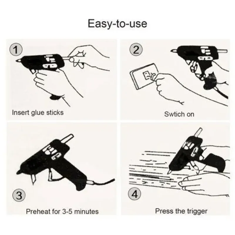 - Не вынимайте остаток не использованного клеевого стержня из пистолета!