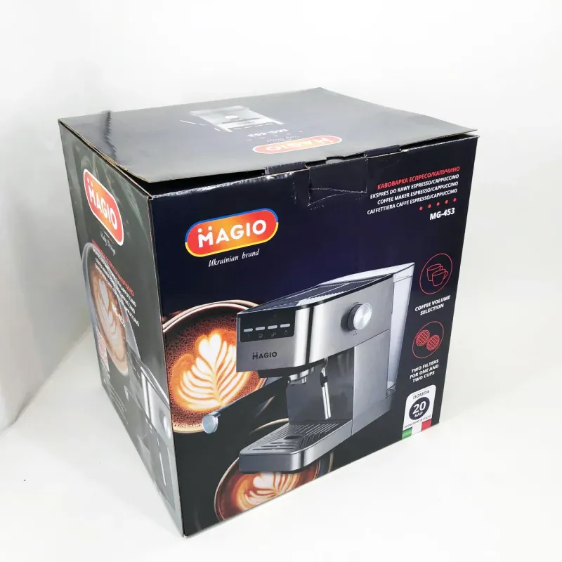 Эспрессо-кофеварка MG-453 разработана для настоящих ценителей кофе. Ведь с ее помощью вы сможете приготовить не только вкусный кофе, а еще капучино и заплатку. При этом процесс приготовления полностью функционален и практичен. Итальянский насос создает давление в 20 бар и делает вкус кофе еще более ароматным и насыщенным. Фильтр с двойными стенками приготовит напиток с густой пенкой, а также обеспечит стойкую температуру и давление при приготовлении кофе. Капучинатор приготовит идеальную молочную пену, как у настоящего бариста. Гладкий корпус и компактный дизайн идеально сочетаются с любым интерьером. В нем прекрасно сочетаются стиль и практичность.