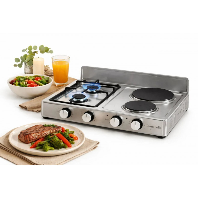 Комбинированная настольная плита LumaBella 57024 — практичное и универсальное решение для кухни, дачи или временного жилья. Модель сочетает газовую конфорку и электрические конфорки, что обеспечивает гибкость в приготовлении блюд и независимость от одного