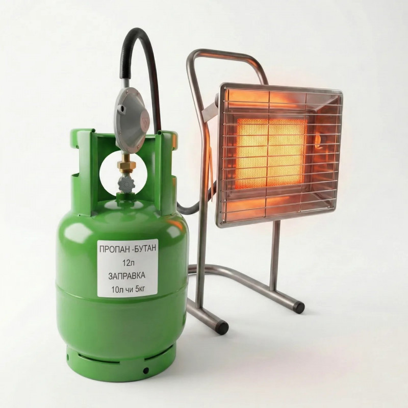 Комплект обігріву 2в1: Газовий пальник Nurgaz + Балон 12 літрів. Автономне тепло для дому та кемпінгу