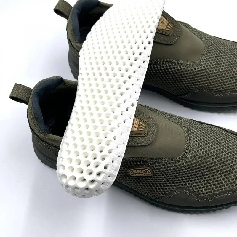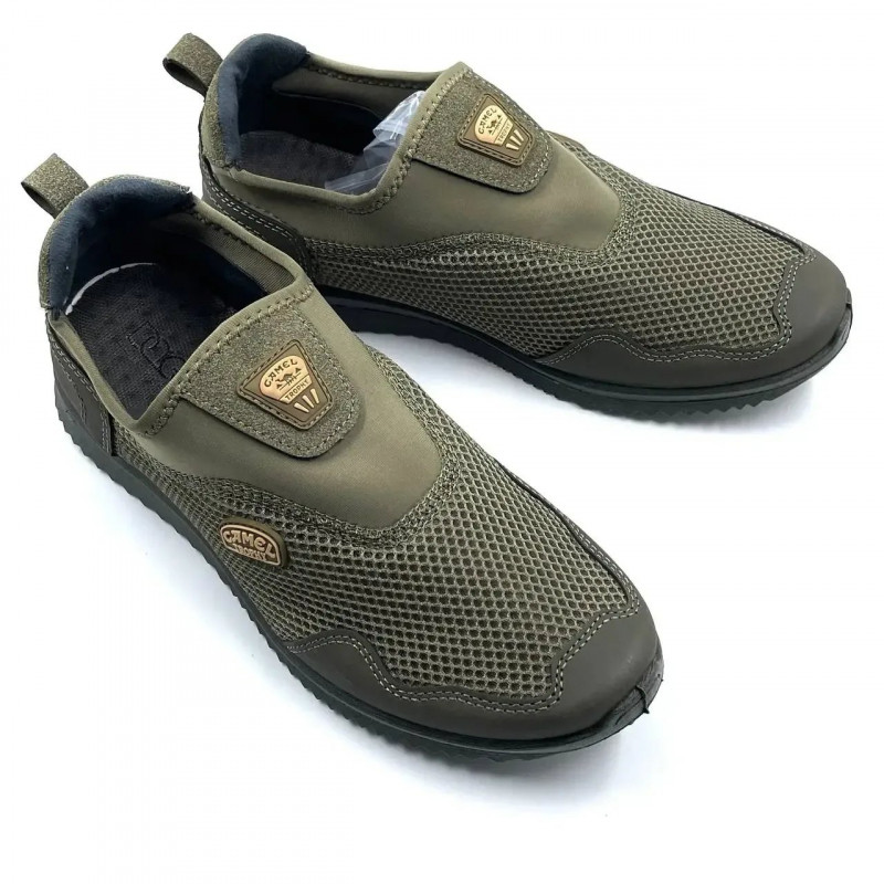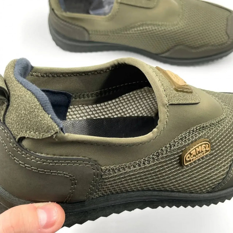 Сітчастий матеріал забезпечує постійну циркуляцію повітря, запобігаючи перегріву стоп. Легка конструкція знижує навантаження на ноги, а гнучка підошва адаптується до рухів. Нейтральний колір хакі дозволяє носити їх з джинсами, шортами та спортивним одягом.