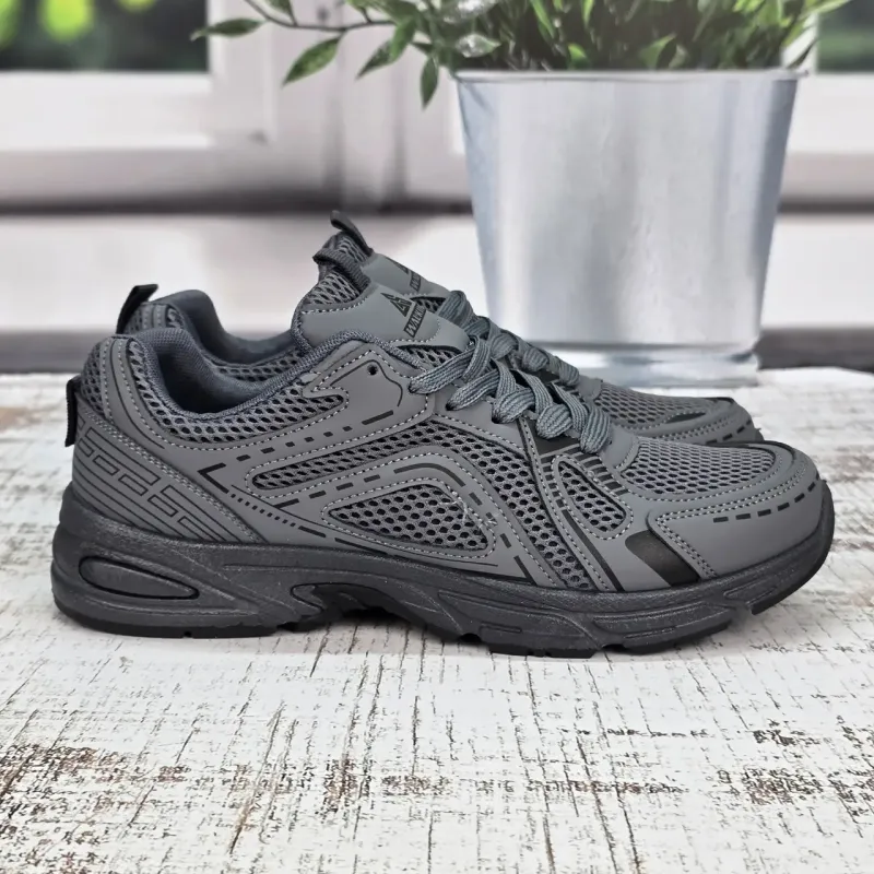 Шукаєте надійне та стильне взуття на весну чи осінь? Чоловічі демісезонні кросівки від українського бренду Gipanis у практичному графітовому (темно-сірому) кольорі — це відмінне рішення для повсякденного носіння. Завдяки комбінованим матеріалам ця модель поєднує в собі зносостійкість та комфортний мікроклімат для ніг. Особливості та характеристики: Матеріал верху: Комбінація міцної екошкіри та текстильної сітки. Додаткові накладки в носковій та бокових зонах захищають взуття від пошкоджень та чудово тримають форму. Внутрішня частина: М'яка текстильна підкладка та устілка на спеціальній пінній основі, що забезпечує додаткову амортизацію та комфорт при кожному кроці. Підошва: Рельєфна ПВХ-підошва зі змінною висотою (1,5–3,5 см). Гарантує надійне зчеплення з поверхнею та захищає від холоду. Фіксація: Класична шнурівка для ідеальної посадки на будь-який підйом. Виробництво: Gipanis (Україна). Розмірна сітка (довжина устілки): 41 розмір — 26,5 см 42 розмір — 27,0 см 43 розмір — 27,5 см 44 розмір — 28,5 см 45 розмір — 29,3 см