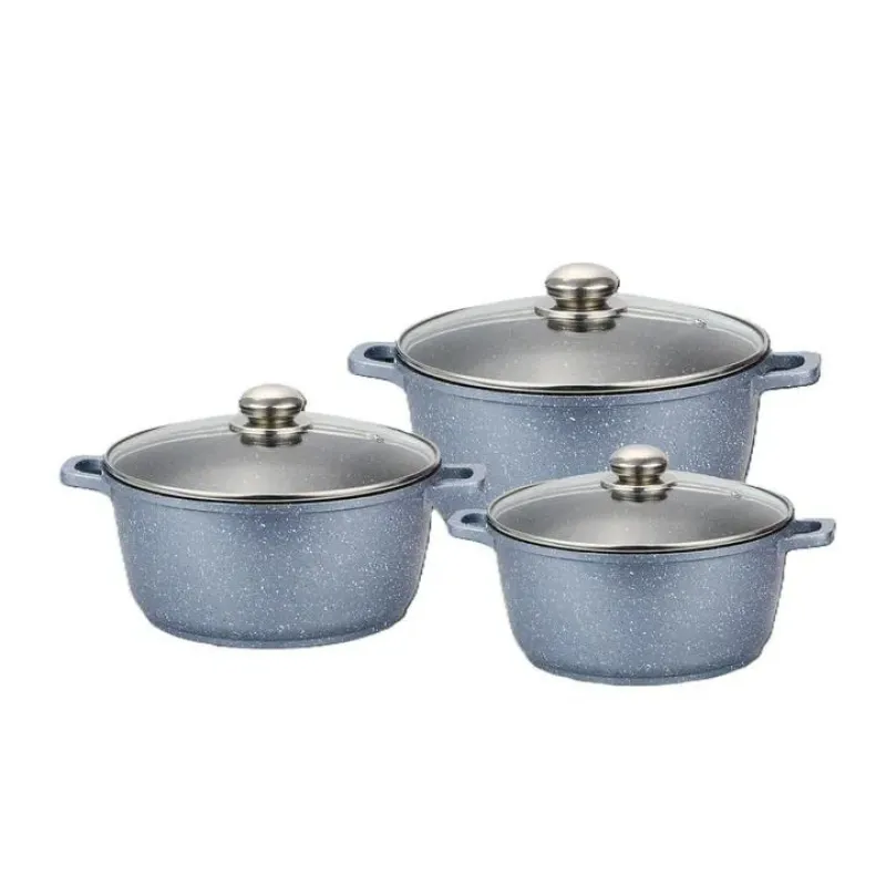 Кухонний набір каструль з кришками Benson BN-299 із литого алюмінію та мармуровим антипригарним покриттям об'ємом 1.5/2.2/3.2 л Сірий