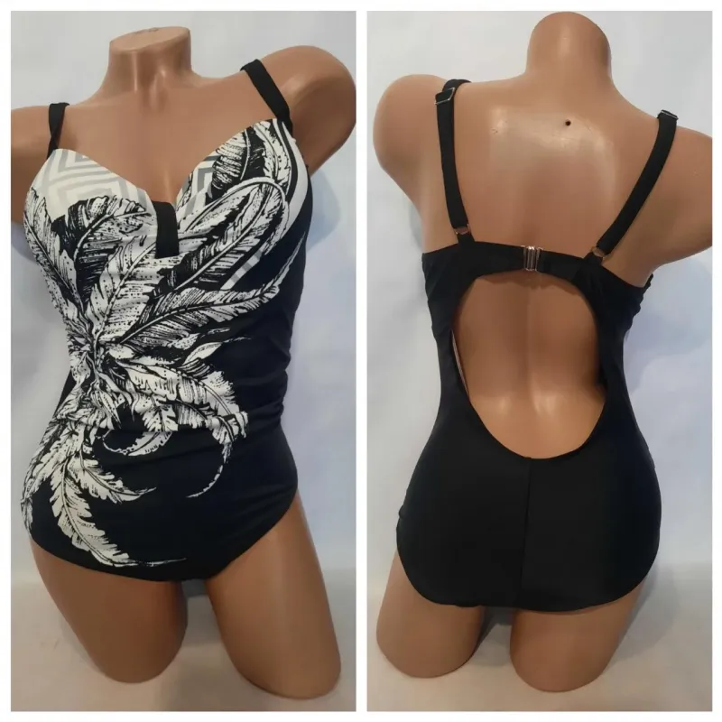 Ідеальний вибір для жінок з розмірами 48-56, які шукають стильний та комфортний купальник. Підходить для будь-якого типу фігури plus size, забезпечуючи підтримку та елегантний вигляд на пляжі або біля басейну.