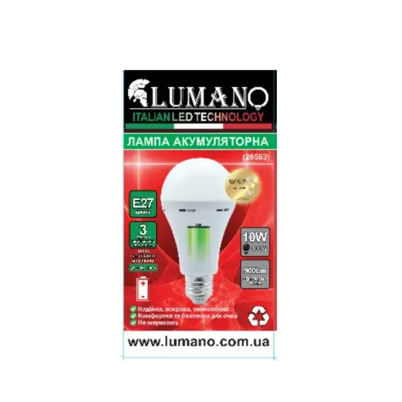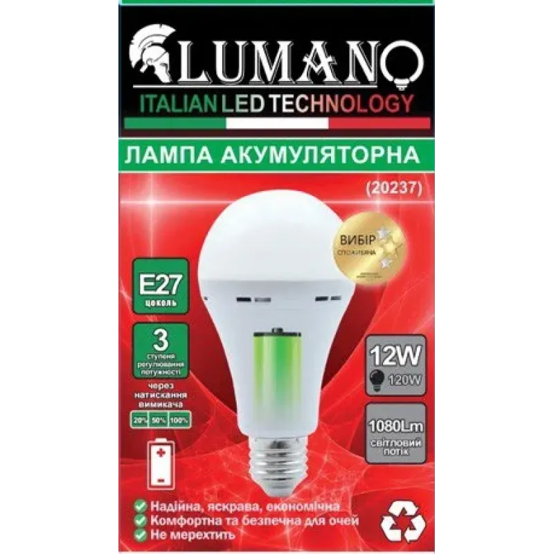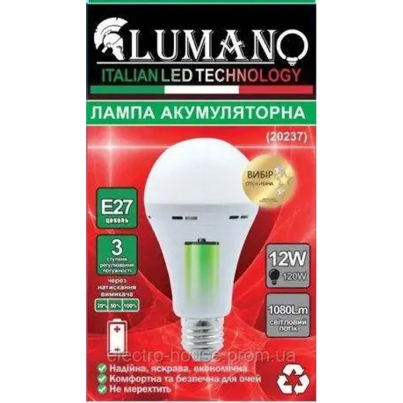 Теги: лампа з акумулятором, аварійна лампа, LED Emergency, лампа при відключенні світла, автономна лампа, лампа LUMANO, енергозберігаюча лампа