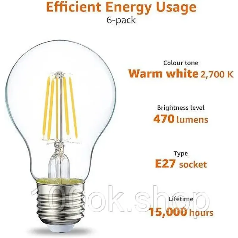 Теги: лампа LED E27, Amazon Basics лампа, Edison лампа 40W, тепле світло E27, енергозберігаюча лампа, LED лампа Едісона, освітлення для дому