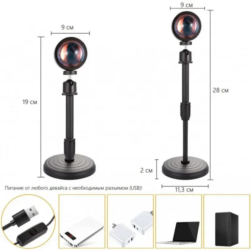 Лампа Атмосферная Проекционный Светильник ЗАКАТ Atmosphere Sunset Lamp эффект радуги, Лампа эффект солнца