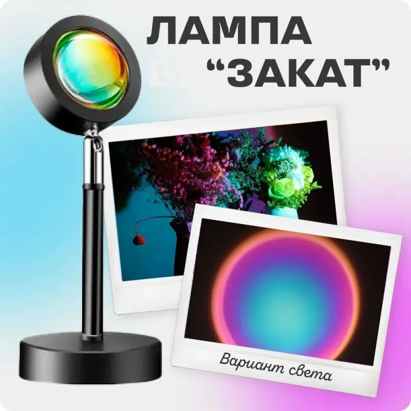 Теги: лампа атмосферна, лампа декораційна, лампа радуга, лампа закат, освітлення кімнати