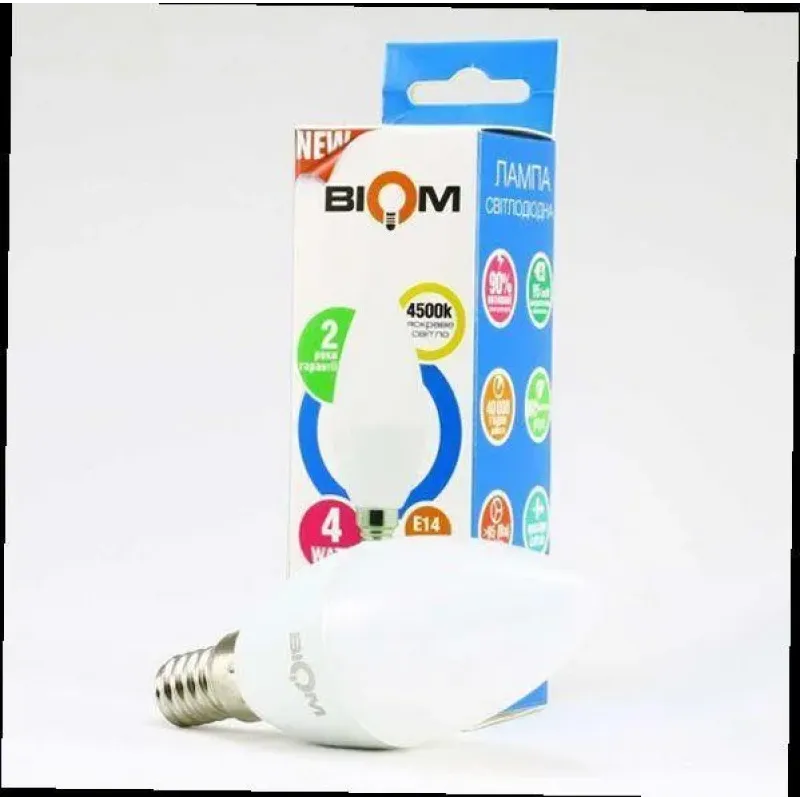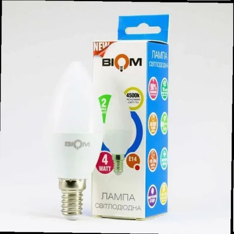 Замовте лампу C37 E14 BIOM 4W 4500K BT-550 прямо зараз та почніть економити вже сьогодні!