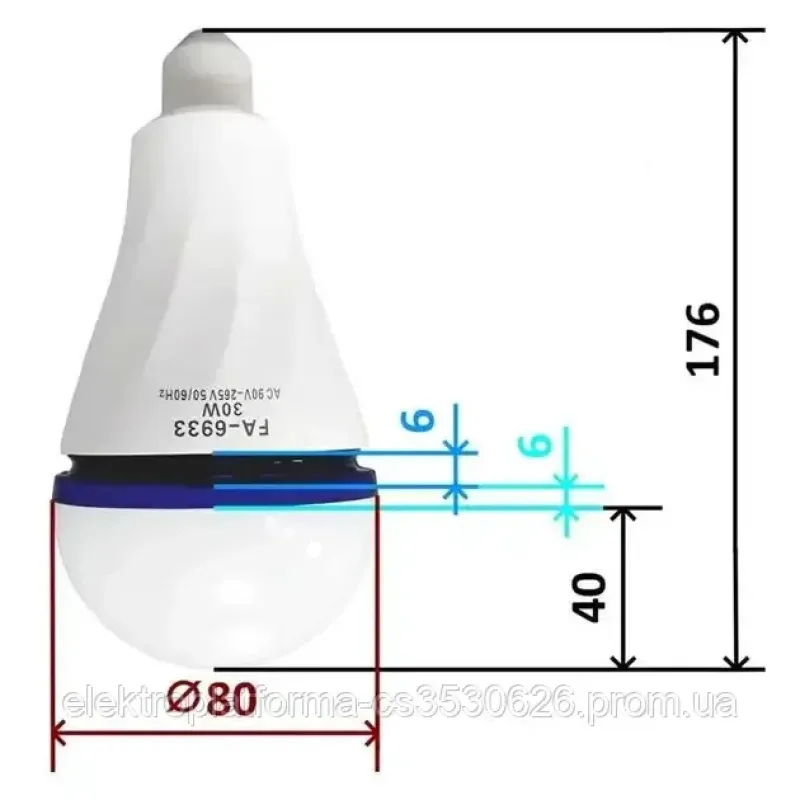 Лампа FA-6933 з акумулятором LED E27 30W — це надійне рішення для безперебійного освітлення вашого дому. Потужність 30W забезпечує яскраве світло, а вбудовані акумулятори 3х18650 гарантують роботу до 6 годин без електрики. Ідеальний вибір для тих, хто цінує комфорт і незалежність.