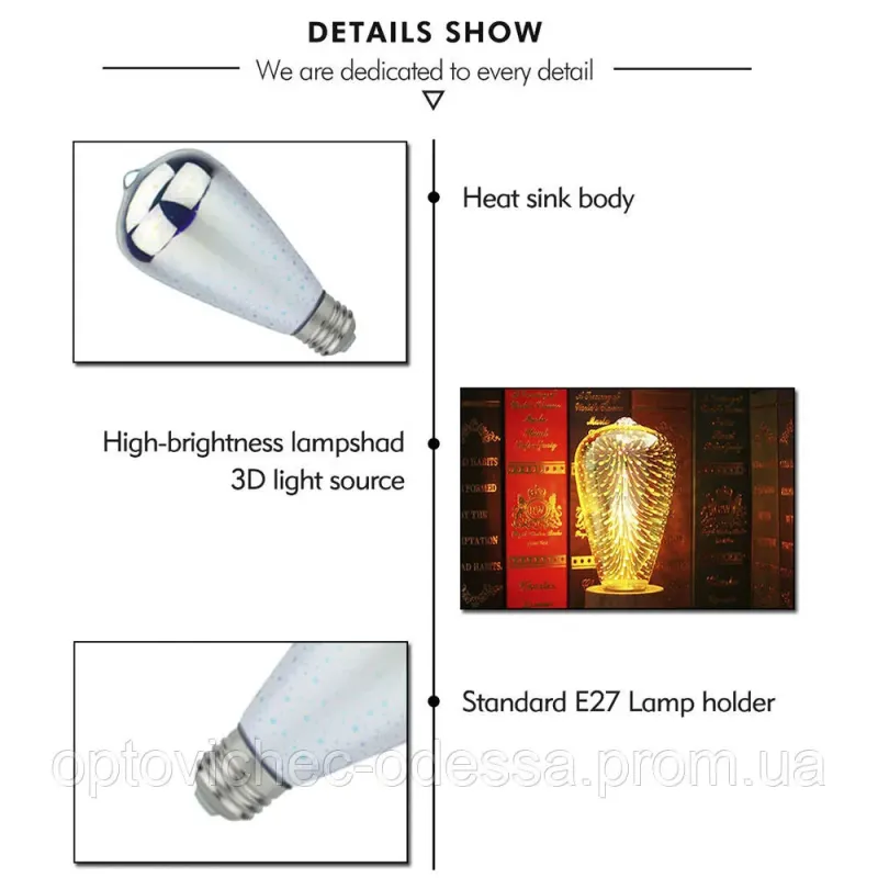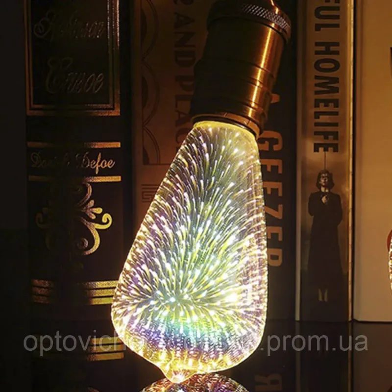 Теги: лампа феєрверк 3D, світлодіодна лампа E27, декоративна лампа, 3D лампа, лампа з ефектом феєрверку, LED лампа 4 Вт, дизайнерське освітлення