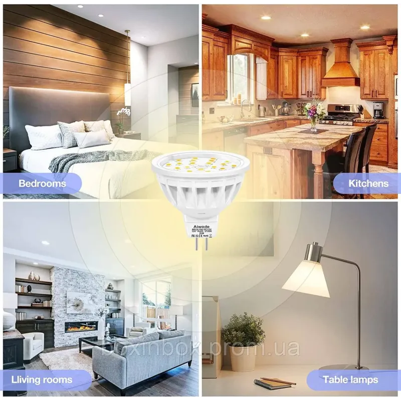 - **Стандарт MR16 GU5.3** — універсальна сумісність з більшістю світильників