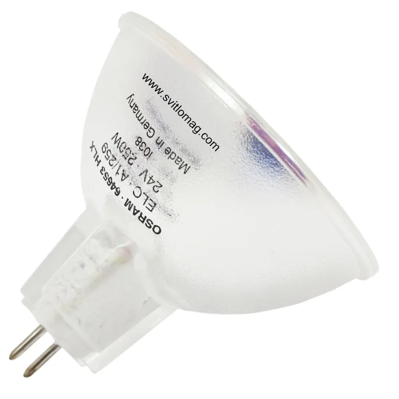 Теги: лампа OSRAM 64653, галогенна лампа 24V 250W, OSRAM HLX ELC, лампа MR16 GX5.3, професійне освітлення, галогенна лампа з відбивачем, лампа для проекторів