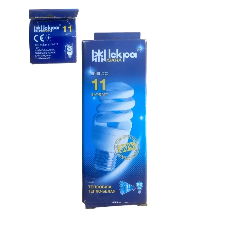 Теги: лампа енергозберігаюча, КЛЛ лампа, лампа Е27, лампа 11W, тепле світло 3000К, економна лампа, лампа ІСКРА