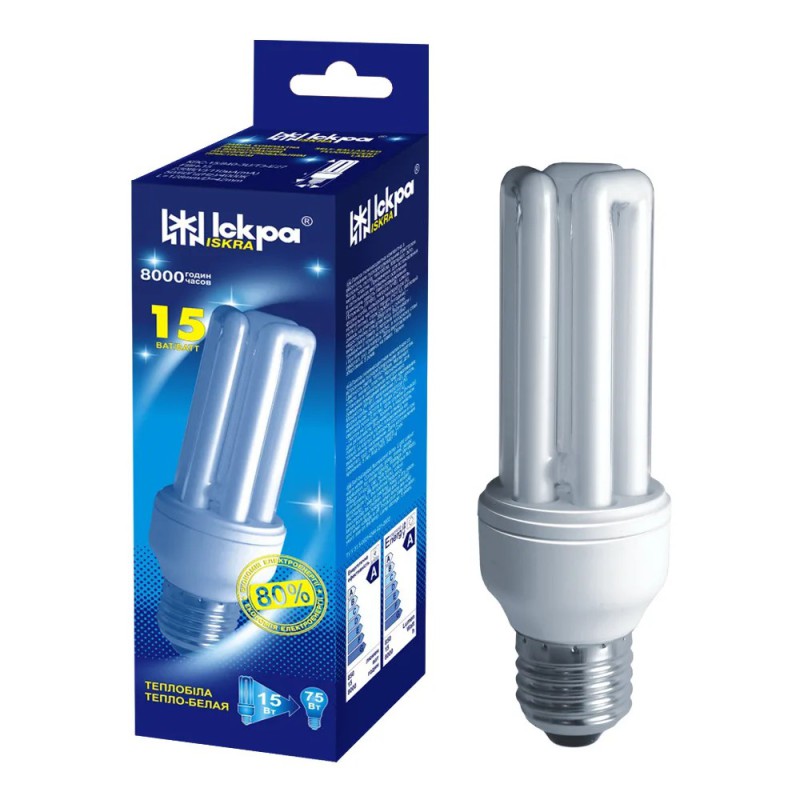 Теги: лампа енергозберігаюча, КЛЛ лампа, лампа Е27, лампа 15W, тепле світло 3000К, економна лампа, лампа ІСКРА