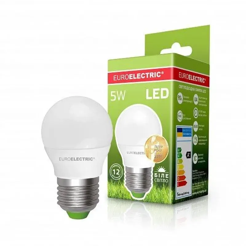 Теги: світлодіодна лампа, LED лампа E27, лампа G45 5W, енергозберігаюча лампа, лампа 4000K, EUROELECTRIC, лампа шар