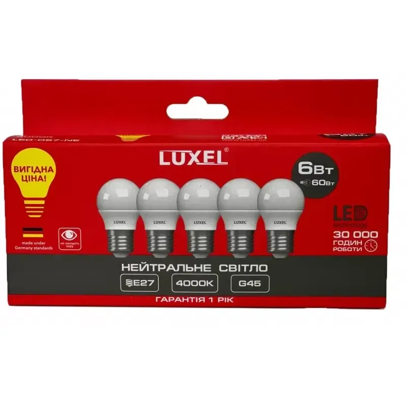 Теги: лампа LED E27, світлодіодна лампа G45, EUROLAMP 5W, лампа тепле світло 3000K, енергозберігаюча лампа, LED лампа шар