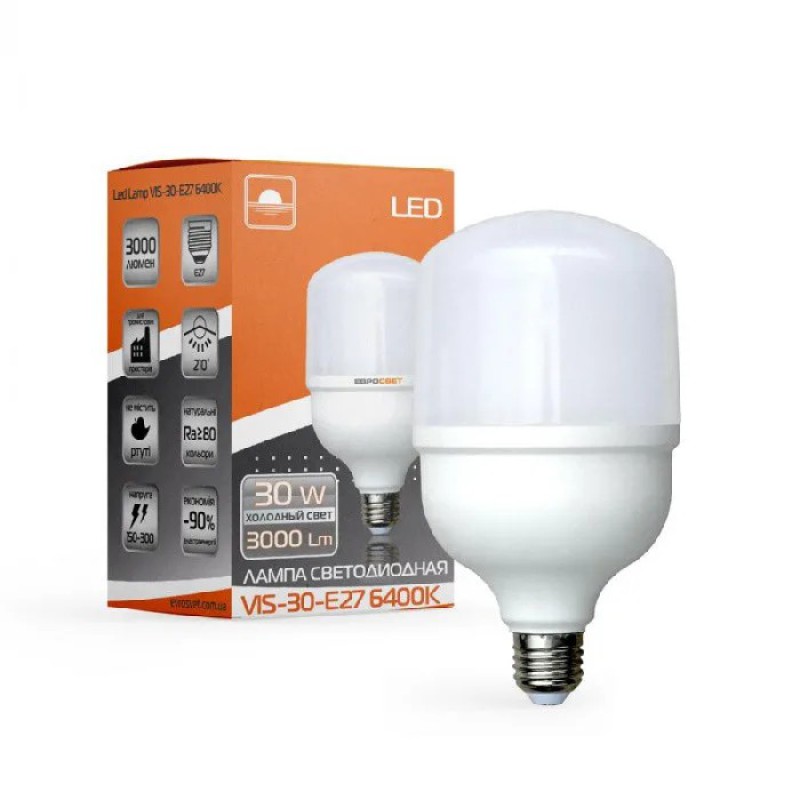 Теги: світлодіодна лампа 30вт, LED лампа E27, лампа EVROLIGHT, потужна LED лампа, енергозберігаюча лампа, лампа 6400K, світлодіодне освітлення