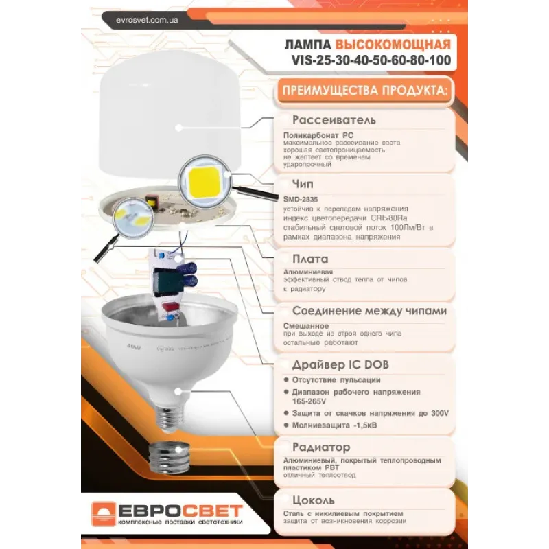 Як Лампа LED EVROLIGHT 30Вт 6400K 3000Лм E27 VIS-30-E27 вирішує цю задачу