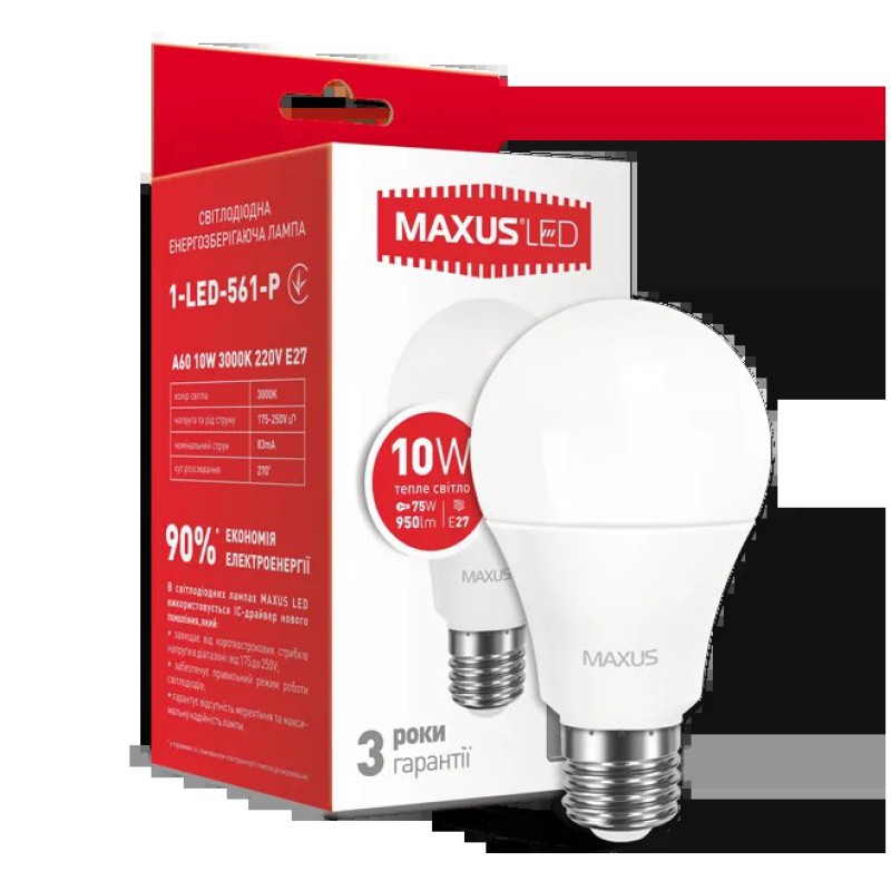 Теги: світлодіодна лампа, лампа MAXUS, LED лампа E27, енергозберігаюча лампа, тепле світло 3000K, лампа 10W, освітлення для дому
