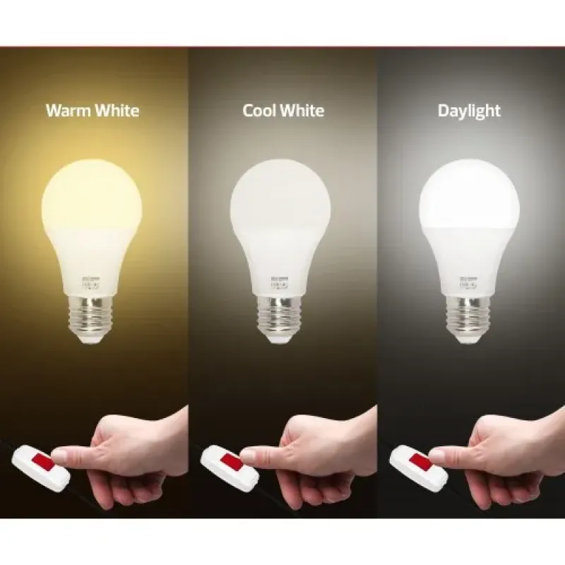 Вкрутіть лампу в стандартний патрон Е27. Для зміни температури світла просто вимкніть і ввімкніть вимикач — лампа автоматично переключиться на наступний режим: 3000К → 4000K → 6400К → 3000К. Ідеально для спальні, вітальні, кухні, офісу.