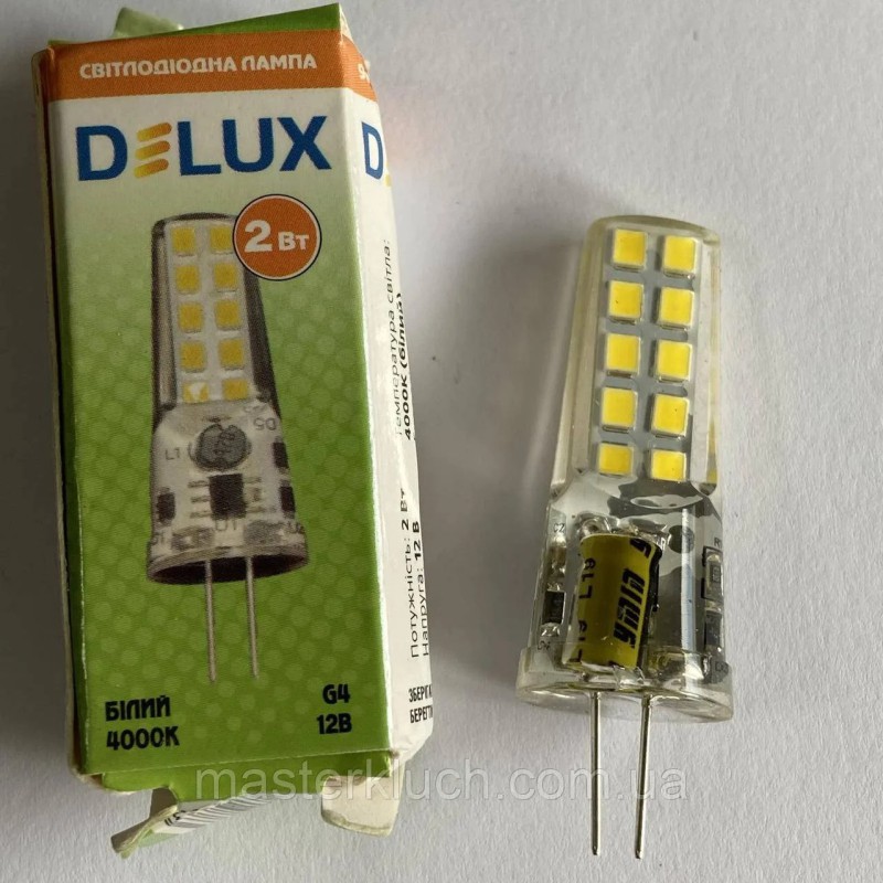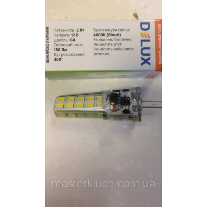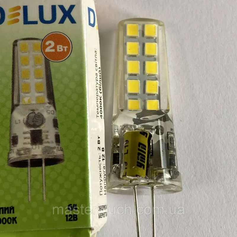 Теги: лампа G4, світлодіодна лампа 12В, LED лампа G4, лампа DELUX, енергозберігаюча лампа, лампа для точкового освітлення, LED 2 Вт
