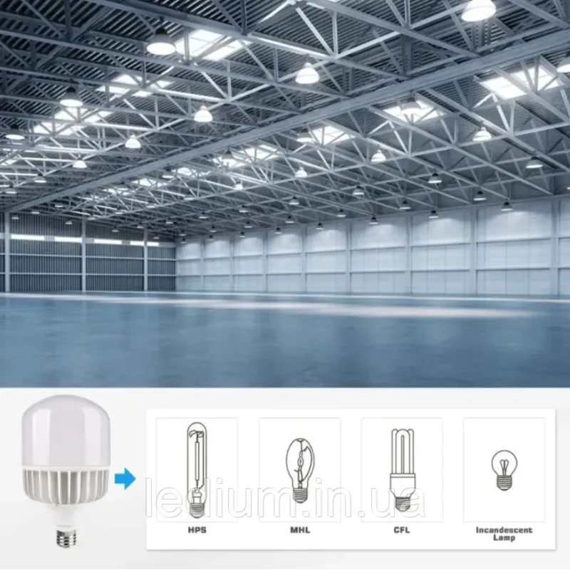 Теги: світлодіодна лампа 80 ват, лампа е27 е40, промислове освітлення, ledium xl, енергозберігаюча лампа, лампа для складу, потужна led лампа