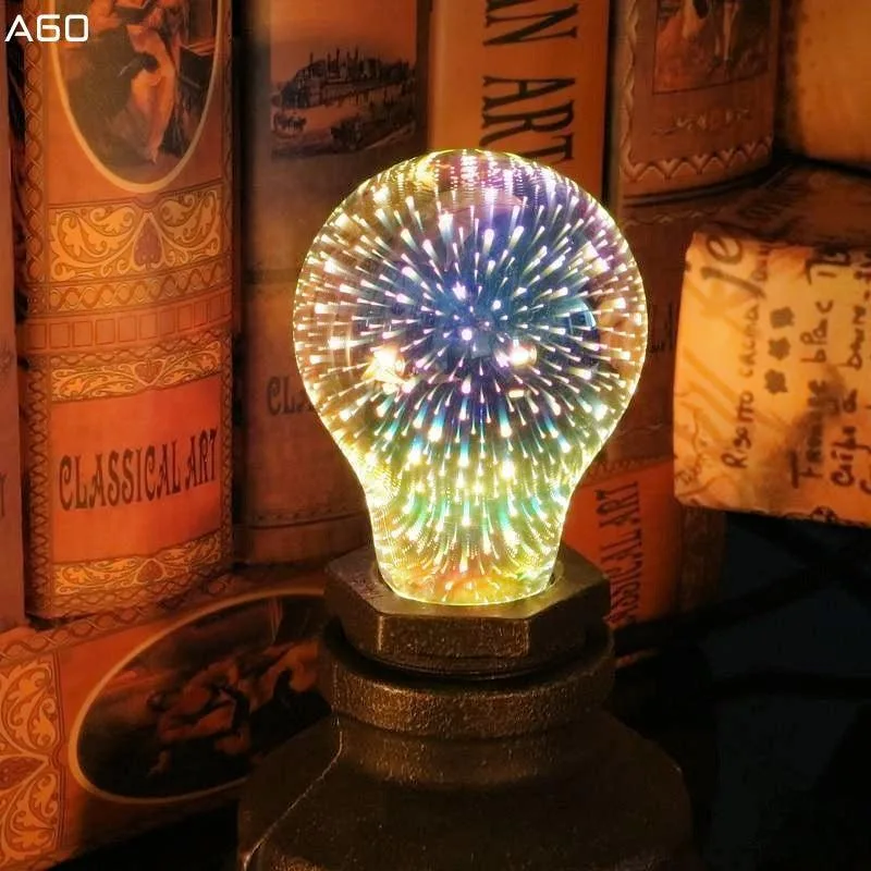 Теги: LED лампа E27, декоративна лампочка, 3D ефект феєрверк, енергозберігаюча лампа A60, світлодіодна лампа 5W, дизайнерське освітлення