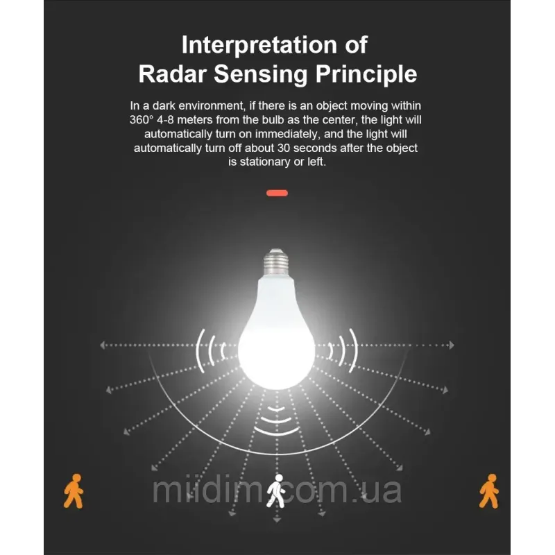 Теги: лампа з датчиком руху, світлодіодна лампа E27, LED лампа 12W, лампа з сенсором, енергозберігаюча лампа, розумне освітлення, лампа тепле світло