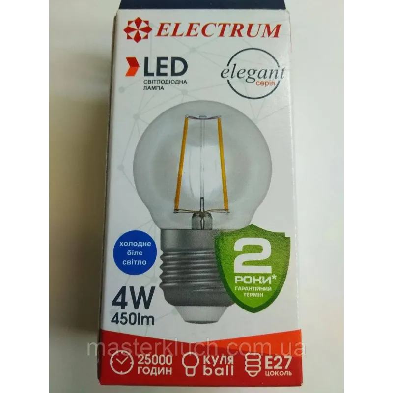 Світлодіодна лампа куля 4Вт E27 Electrum — це сучасне рішення для домашнього та офісного освітлення, яке поєднує енергоефективність, довговічність та якісне світло. Ідеальна заміна застарілим лампам розжарювання потужністю 40Вт.