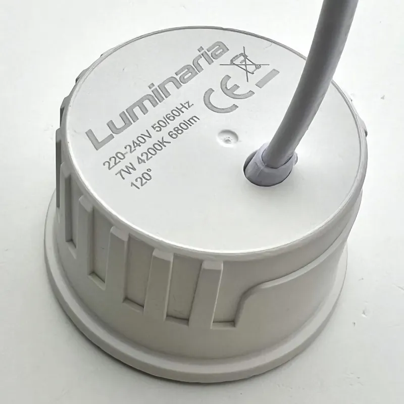 Завдяки LED-технології лампа споживає лише 7W, замінюючи 50-ватну галогенну, що знижує витрати на освітлення у 7 разів. Термін служби до 30 000 годин означає 10+ років роботи без заміни. Мінімальне нагрівання гарантує безпеку використання.