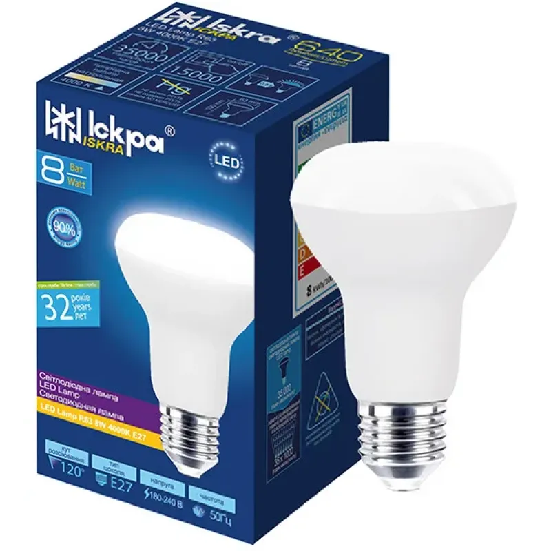 Теги: світлодіодна лампа, LED лампа E27, лампа R63, енергозберігаюча лампа, лампа 4000K, LED освітлення, лампа Іскра