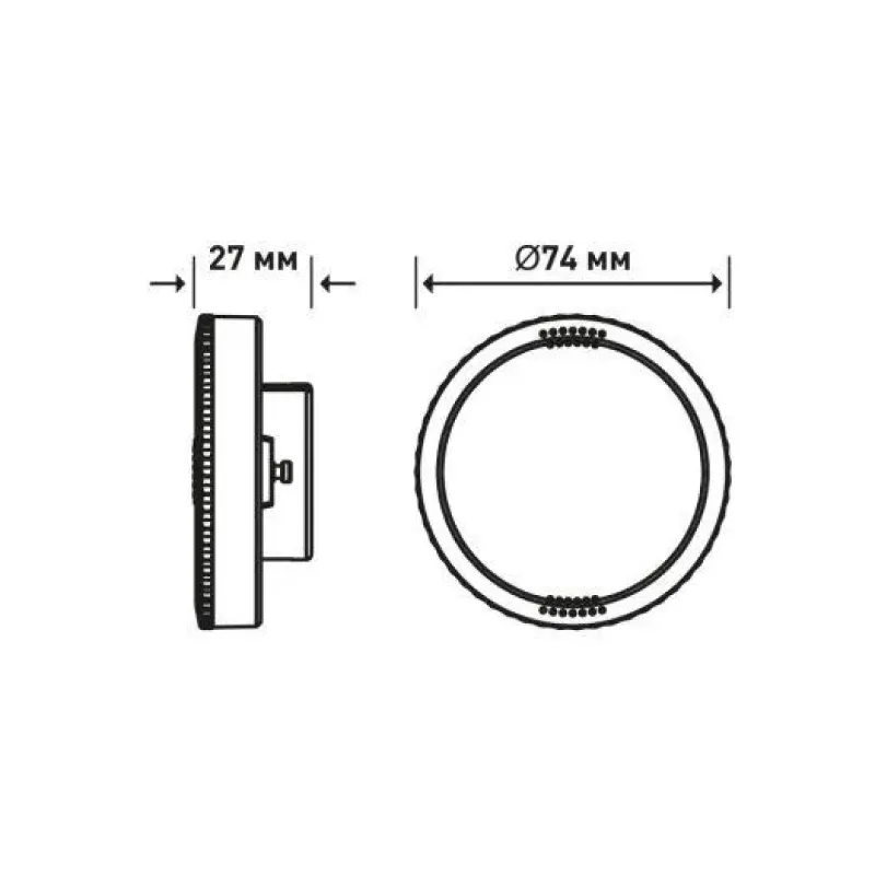 - **Цоколь GX53** — стандартний розмір для точкових світильників