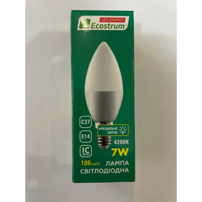 Теги: світлодіодна лампа, LED лампа E14, Ecostrum C37, енергозберігаюча лампа, лампа 4100K, освітлення для дому, економна лампочка