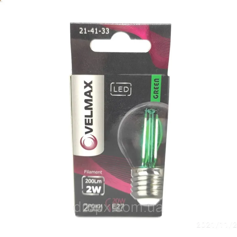 LED ЛАМБА ФИЛІАМЕНтНА VELMAX V-FILAMENT-G45, 2W, E27, ЗЕЛЕНИЙ, 200LM